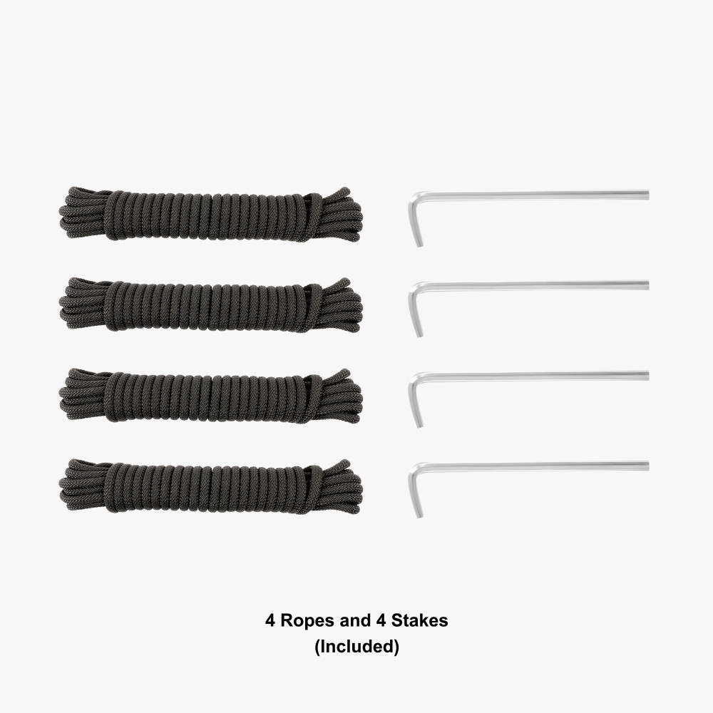 Heavy duty hex shape 40 mm. aluminum hardware gives the tent exrta strength when exhibited outdoors, our frame is a serious upgrade from steel framed tents that bend and buckle easily. Telescopic legs allow you to adjust the height, and the interior lattice expands the tent interior with the crank of a handle. Each leg has a foot plate ready to be staked to the ground. (Ropes, stakes, and standard carrying bag included with hardware).